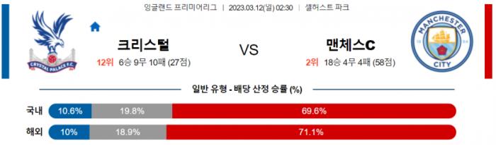 EPL 3월 12일 02:30 크리스탈 팰리스 : 맨체스터 시티