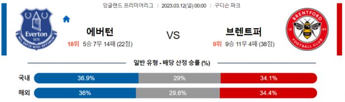 EPL 3월 12일 00:00 에버턴 : 브렌트퍼드 FC