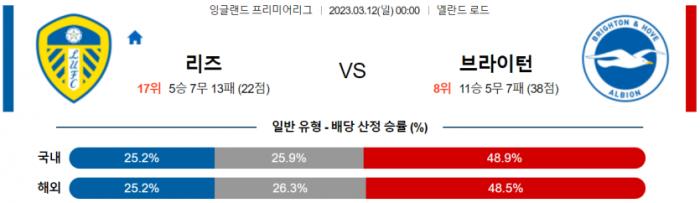 EPL 3월 12일 00:00 리즈 유나이티드 FC : 브라이턴 앨비언