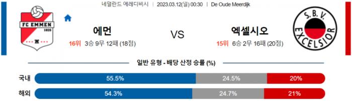 에레디비시 3월 12일 00:30 FC 에먼 : 엑셀시오르