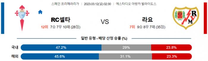 프리메라리가 3월 12일 02:30 셀타 비고 : 라요 바예카노
