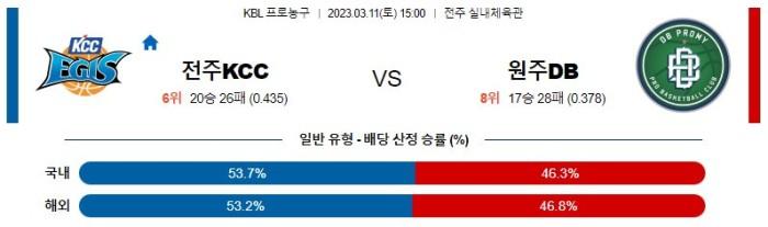원주DB가 외곽을 막지 못하게된 탓에 무너진 상황이고, 두경민이 부상으로 뛰지 못할 가능성이 크다 보니까 공격에 있어서 힘을 받지 못할거라고 예상되는 부분과 전주KCC가 최근 경기에서 대패를 하기는 했었지만 라건아 이승현을 앞세워서 반등에 성공할거라고 예상이되는 경기에요.