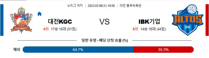 【V-리그(w)】 3월8일 대전KGC vs IBK기업