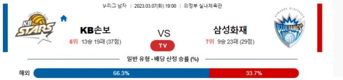 3월 7일 19:00 V-리그 남자 KB손해보험 : 삼성화재